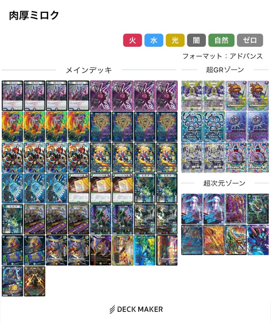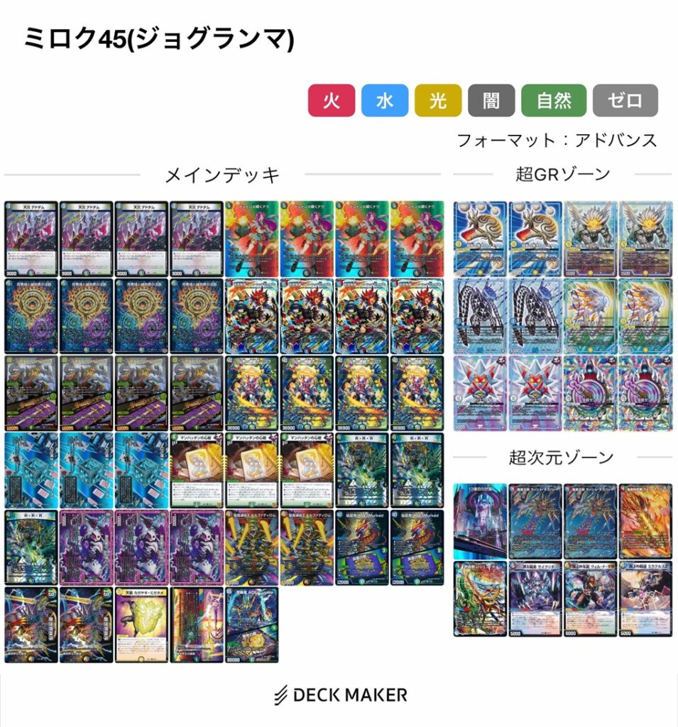 言うなれば《真気楼と誠偽感の決断》カウンター系のデッキの1つであり、その着地点として広く制圧が可能な《仙界の麒麟児 ミロク》を選択した……といったようなデッキになっています。