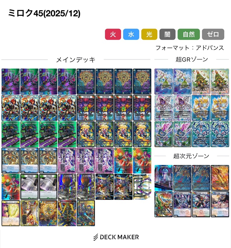 てなわけで《響命龍覇 リンクウッド&ヒビキ》を軸に戦うためにも最低限次元は7枠欲しかったので、デッキは45枚目標で作成開始。