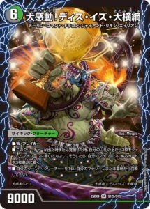 - 覚醒:自分のクリーチャーがシールドをブレイクした時、このターン相手のシールドを2つ以上ブレイクしていれば、このクリーチャーをコストが大きいほうに裏返す。