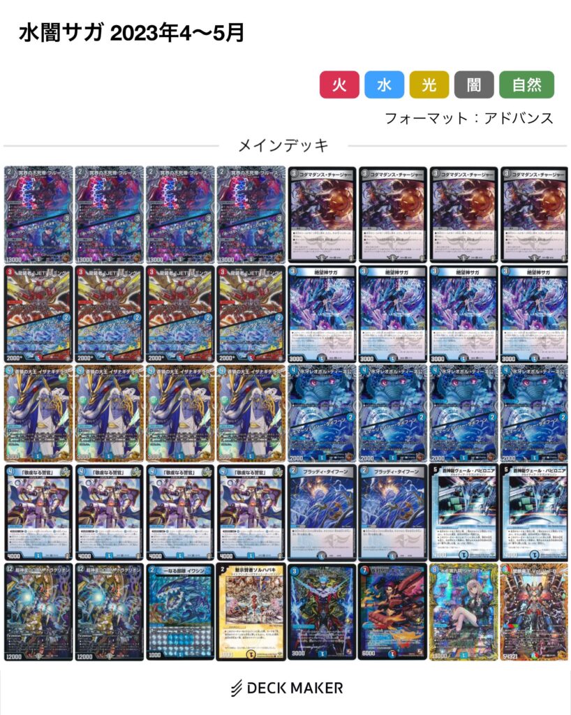 《一なる部隊 イワシン》が殿堂して以降、【サガループ】の構築は《コダマダンス・チャージャー》型が一気に主流となりました。
